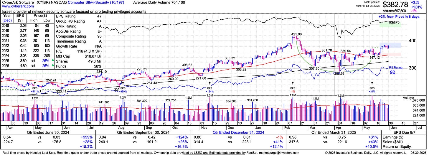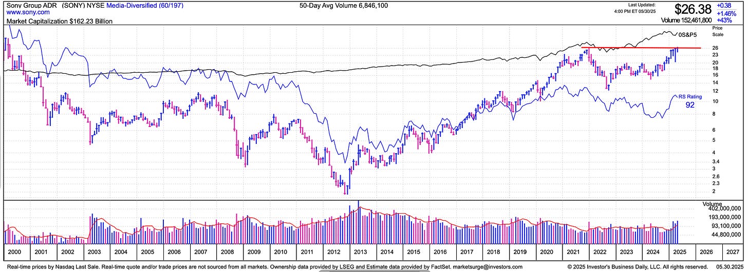 Markets in MotionChart Surf SundaySONY, VRSN, JBL, CLS, PLTR, APP, SNOW, ZS, CYBR, HOOD, AVGO, CVNANot Just NoiseJun 01, 2025ShareLong term cup and handles - SONY, VRSNContract Manufacturers: JBL, CLSSoftware: PLTR, APPCybersecurity: SNOW, ZS, CYBRThanks for reading Not’s Substack! Subscribe for free to receive new posts and support my work.Subscribe